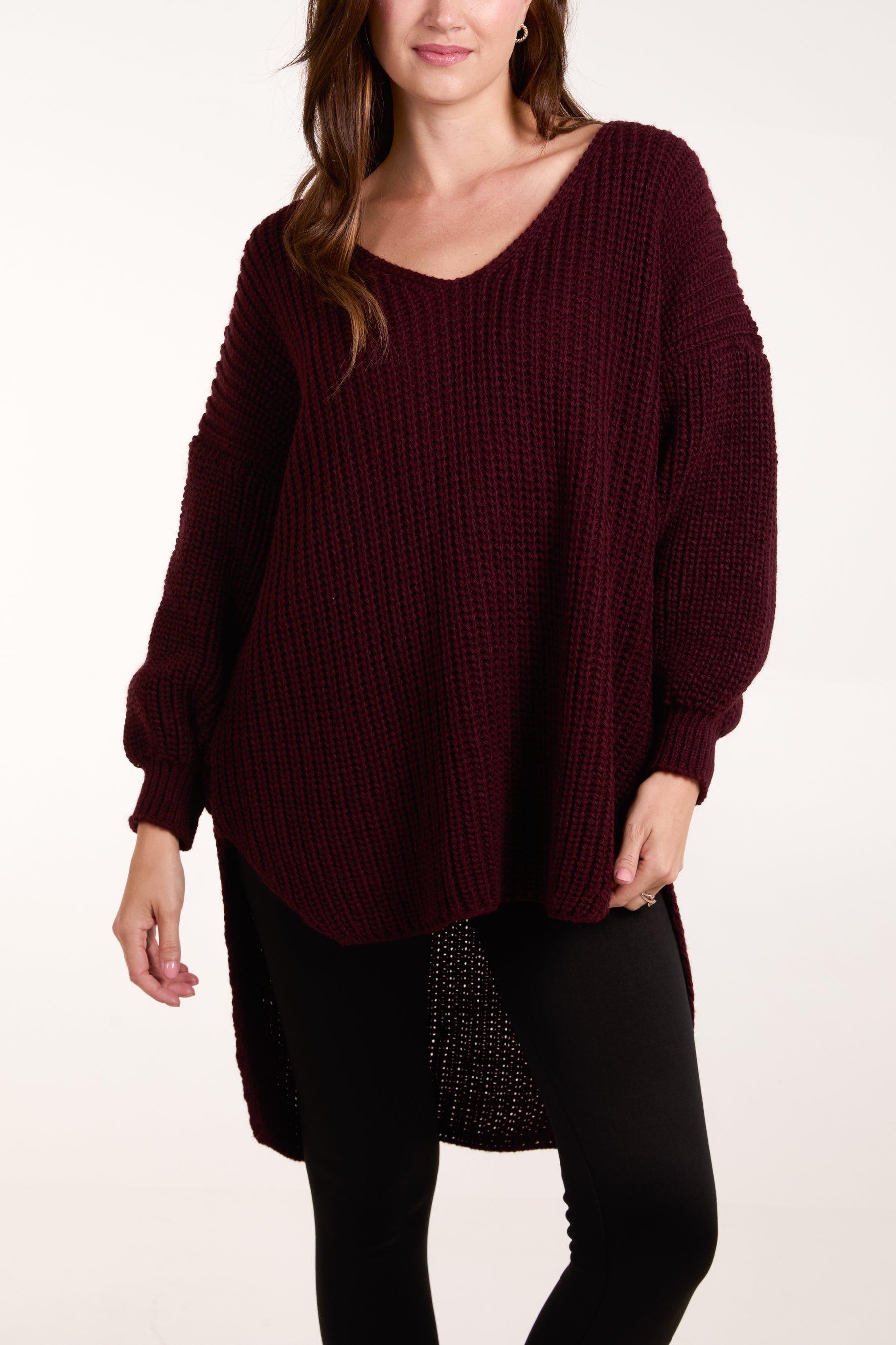 Oversized V-Neck Chunky Knit Dip Hem Jumper