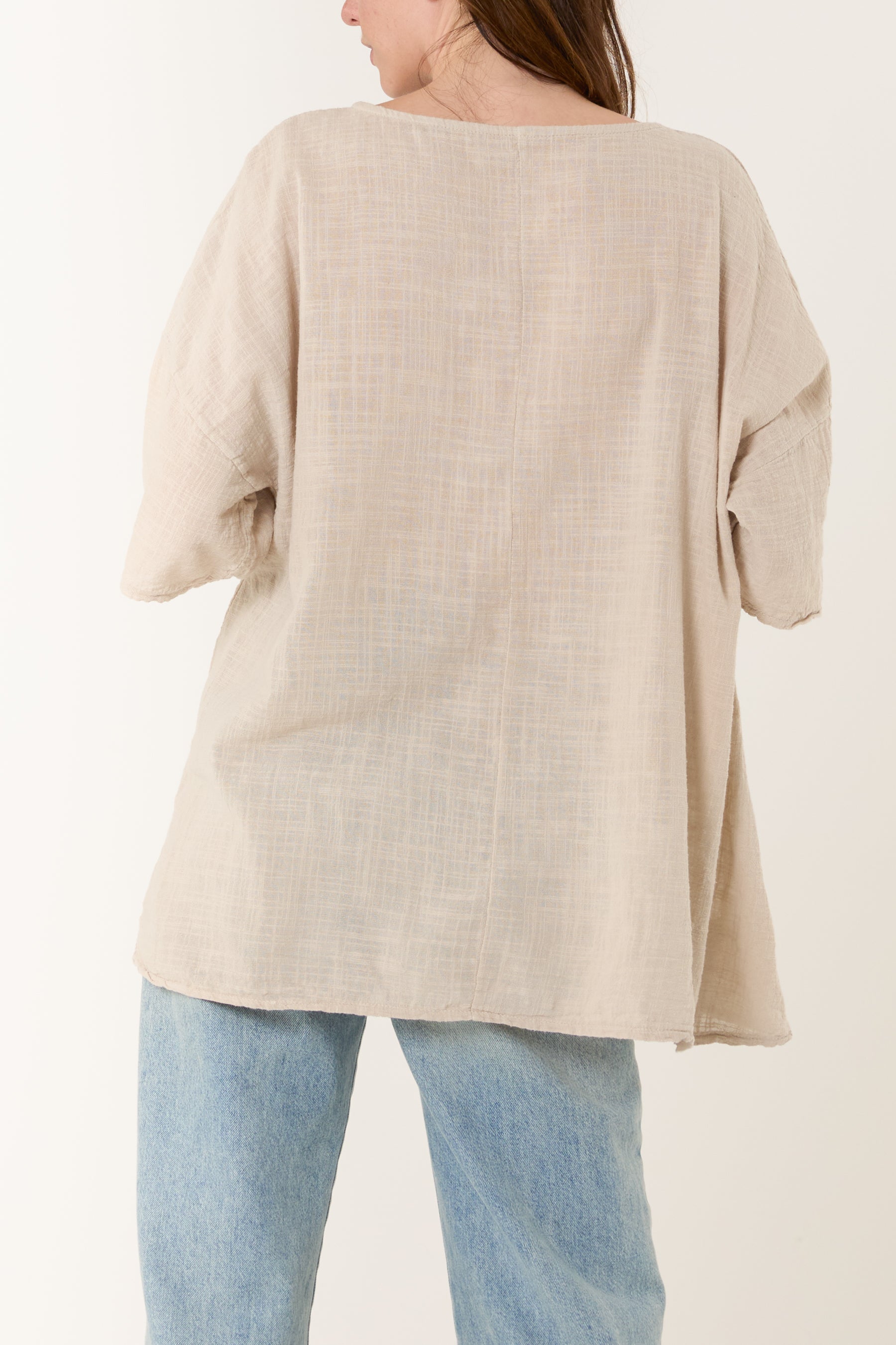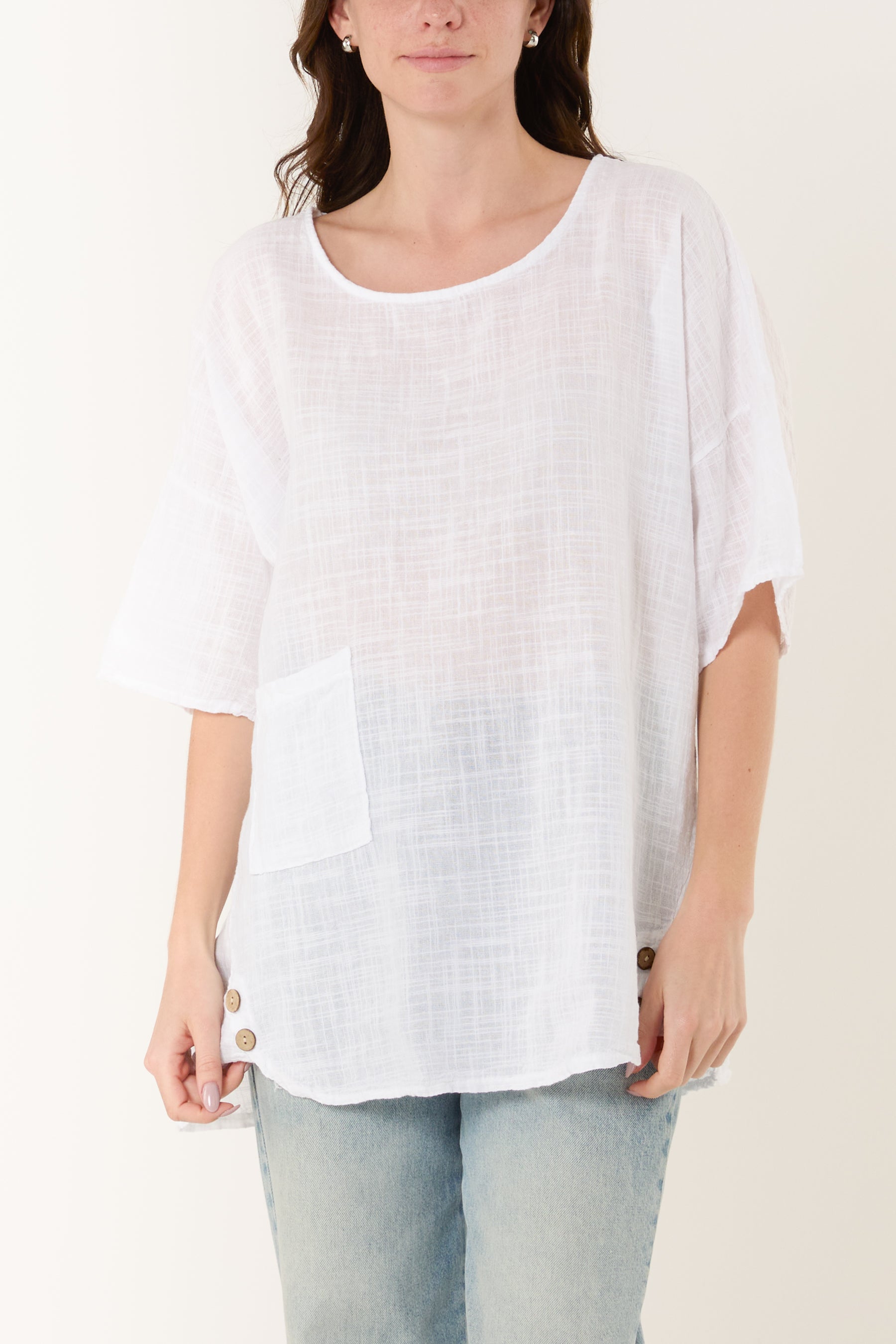 Round Neck Button Detail Cotton Top